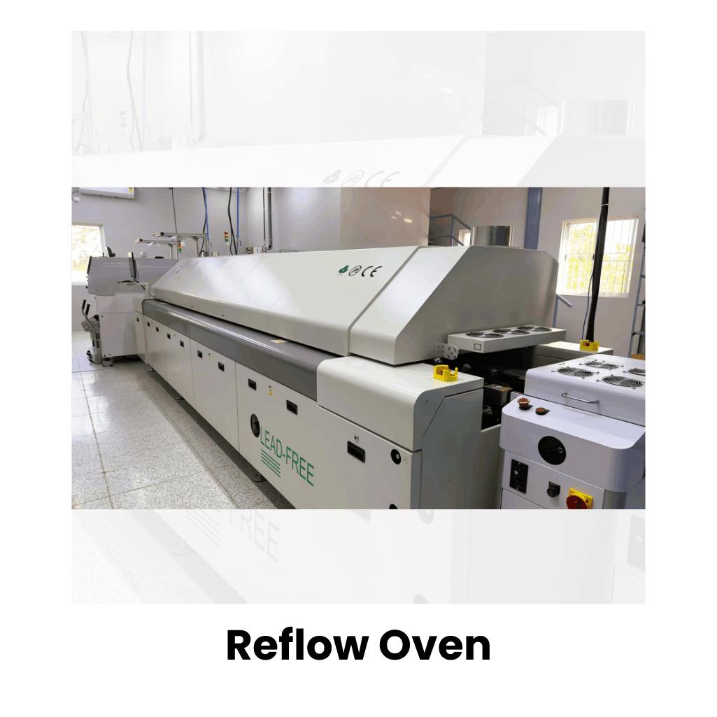 ➥ Reflow Soldering – 10-Zone Reflow Oven: Assembled boards pass through a 10-zone reflow oven with precisely controlled temperature profiles for both leaded and lead-free processes. This ensures uniform soldering, strong joint integrity, and protection of sensitive components.