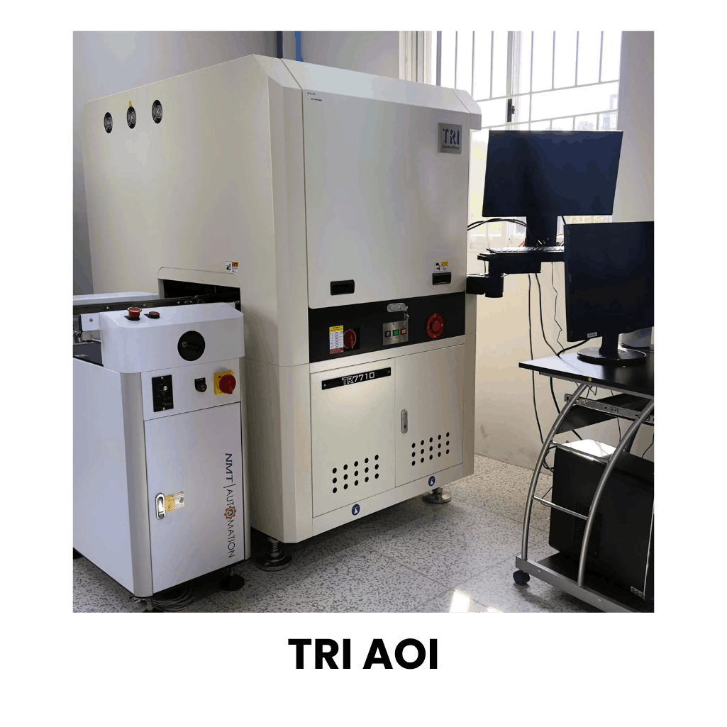 ➥ Inspection and Quality Control – TRI Automated Optical Inspection: Our assembly line is supported by TRI Automated Optical Inspection (AOI) and X-ray inspection for BGAs and hidden joints. Multi-level inspection enables early defect detection and ensures high-quality assemblies before testing.