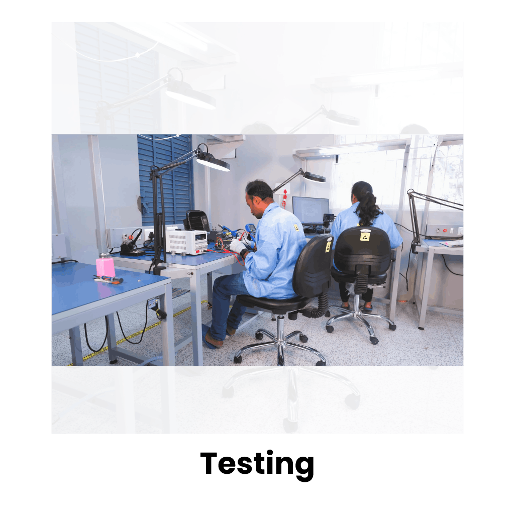 ➥ Testing, Rework, and Packing: Completed boards undergo functional testing using flying probe or custom test setups. Any defects are corrected at dedicated rework stations, followed by retesting. Final assemblies are packed in ESD-safe, moisture-protective packaging for secure delivery.